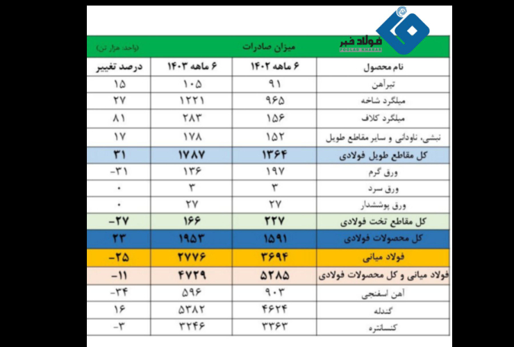 📌کاهش ۱۱ درصدی صادرات فولاد ایران/ جزئیات کامل صادرات زنجیره آهن و فولاد در نیمه نخست امسال